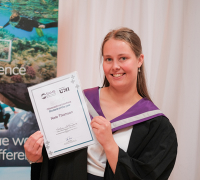 I choose this course mainly for the location, I had a couple other options, but after seeing SAMS, especially how small the university is compared to how large the research centre is, I came here just knowing I would have lots of opportunities to get into the lab, and do lots of research, which is what I want to do. I've had work experience pretty much from the first practical we had, I asked my lecturer if he needed help, and helping with research just snowballed from there. In fact, in my third year, I was really helped by supervisor to develop an assignment I had written into a paper that we eventually published.