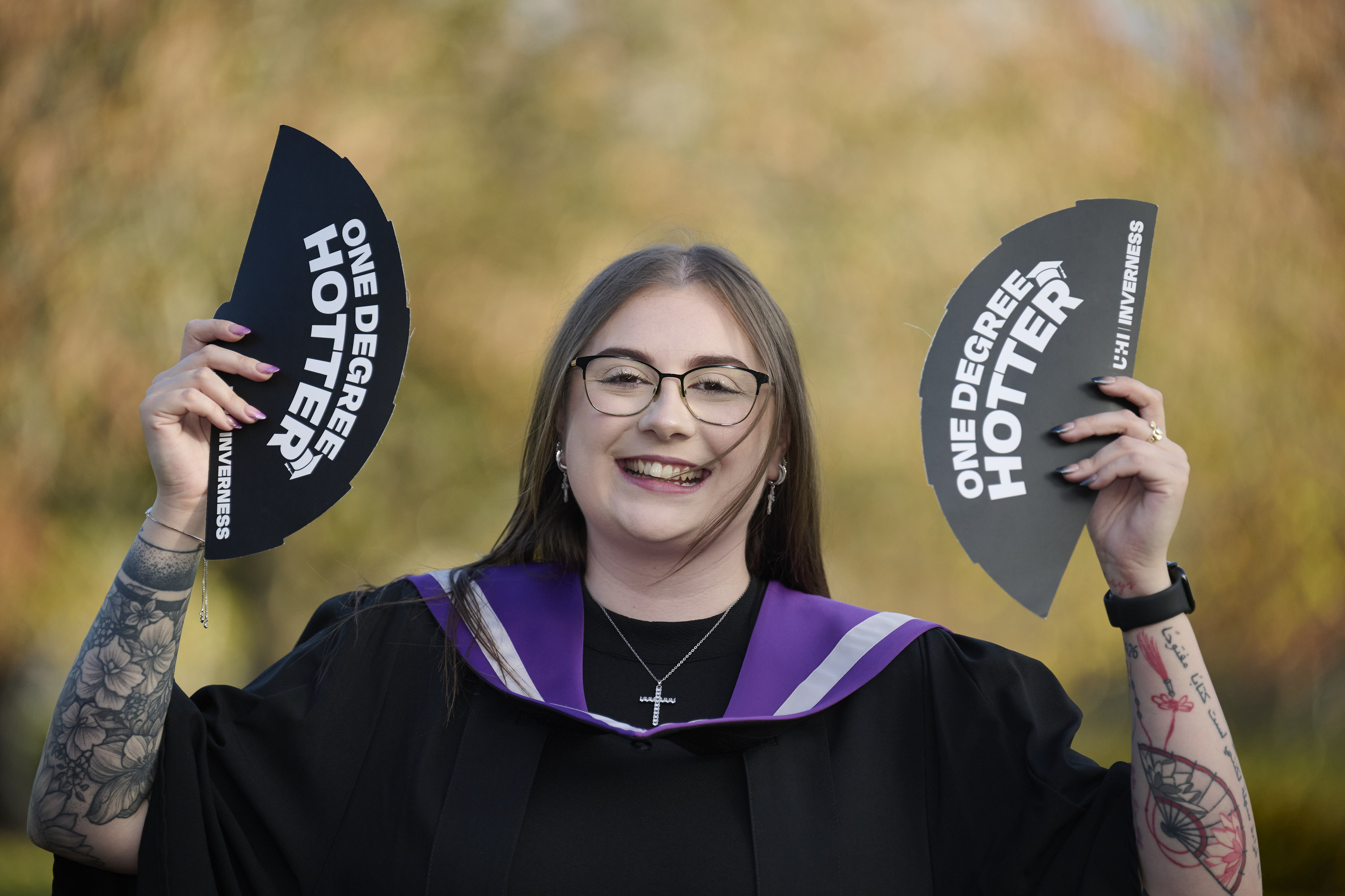 Switching courses proved the right decision for Nicole Chapman who is the first UHI Inverness student to graduate with BA (Hons) Moral and Philosophical Studies with Religious Education.