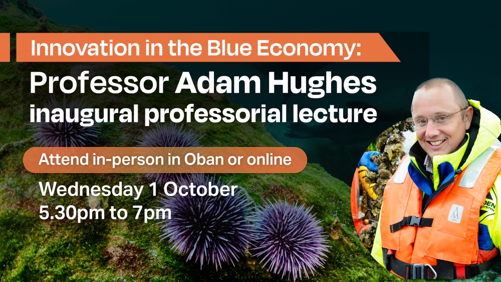 Professor Hughes’ inaugural professorial lecture entitled ‘Innovation in the Blue Economy’ will take place at SAMS and online on Wednesday 1 October from 5.30pm to 7pm. To book your place please go to our events page