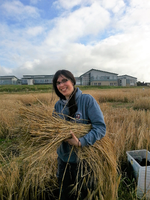 Magdalena undertook her PhD studies at Orkney Archaeology Institute from 2016-2020, researching past seaweed consumption, and the implications that seaweed consumption by sheep holds for our understanding of the past. As part of this, she researched how the chemical and isotopic composition of skeletal material changes with the consumption of seaweed in modern material, and analysed archaeological material, including sheep from the Ness of Brodgar, to identify past seaweed consumption. Magdalena also studied the effects of fertilising barley with seaweed in a field trial (pictured) in partnership with our Agronomy Institute and the James Hutton Institute in Dundee.
