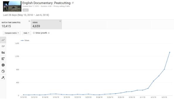 Well, there appears to have been a shift in the wind in the YouTube algorithms, judging by recent analytics for the English version of the documentary. This looks more like a muirburn out of control!