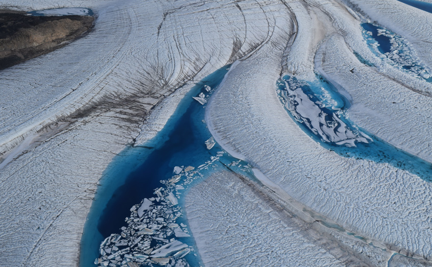 The Greenland Ice Sheet is decaying at an accelerating rate in response to climate change. Warm Atlantic waters moving through fjords eventually meet the ice fronts of marine-terminating glaciers, increasing melting and causing icebergs to break off. In turn, the injection of increased fresh meltwater into the ocean is altering both ocean currents and marine ecosystems around Greenland and farther afield in the North Atlantic, with potential effects on UK weather systems.