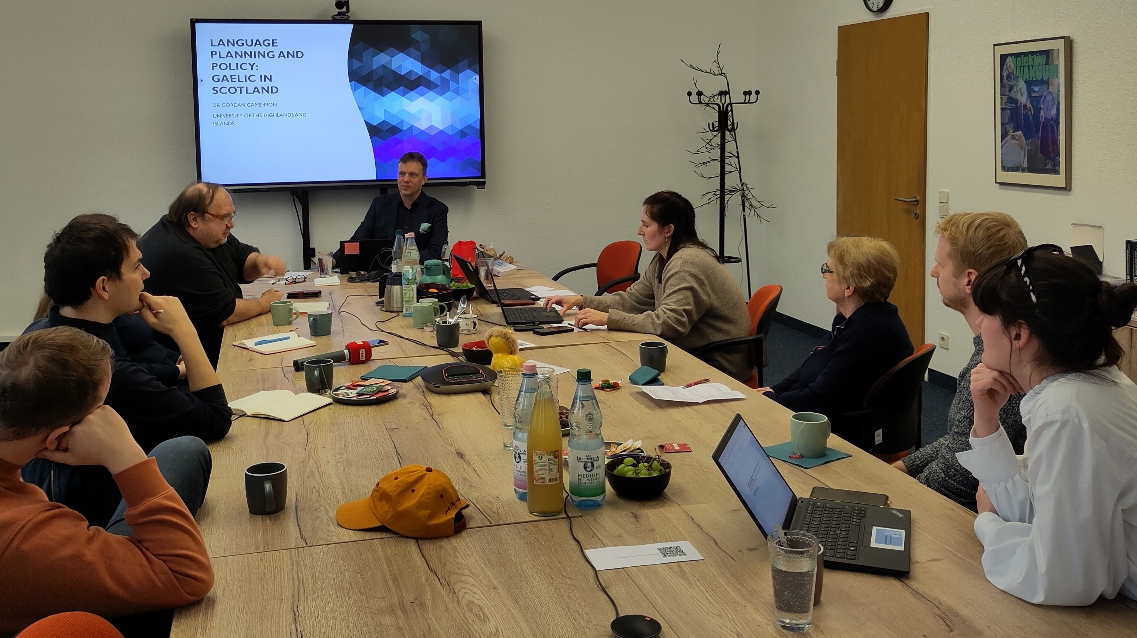 Chùm Gòrdan deasbadan mì-fhoirmeil an uair sin ri sgioba Institut na Sòrbais, mus tug e seachad òraid an-sin air saoghal poileasaidhean na Gàidhlig an Alba, leasachaidhean co-aimsireil (mar eisimpleir Bile nan Cànanan Albannach a tha a’ dol tro Phàrlamaid na h-Alba an-dràsta) agus obair an LSI fhèin. Bha deasbad beòthail a mhair mu uair a thìde às dèidh làimhe cuideachd, ceangailte ri cuspairean ceangailte ri poleasaidh cànain, leasachadh choimhearsnachdan, buaidh na h-àrainneachd air cultar, agus mar sin air adhart. Chaidh agallamh a chumail ri Gòrdan le RBB, stèisean rèidio na Sòrbais.